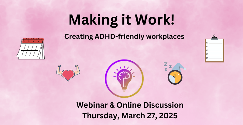 Join Coach Faelyne for Making it Work! Creating ADHD-friendly workplaces, an online event dedicated to helping individuals and organizations understand and support ADHD in the workplace. Whether you have ADHD yourself or work with someone who does, this event will provide valuable insights, strategies, and resources to foster a more inclusive and productive work environment. Don’t miss this opportunity to learn from experts in the field and connect with others who are passionate about creating ADHD-friendly workplaces. Register now and take the first step towards making your workplace a better place for everyone!